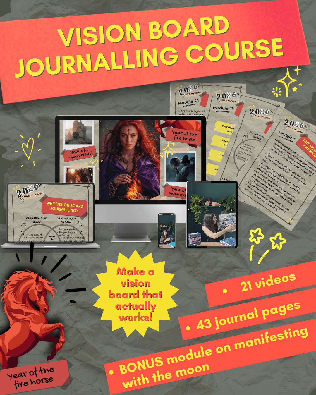 This inspiring course is the result of more than 15 years’ work with vision boards and journalling, and the potent combination of these two tools together.